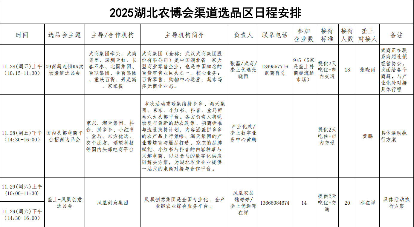 2025年湖北农博会渠道选品日程一览表